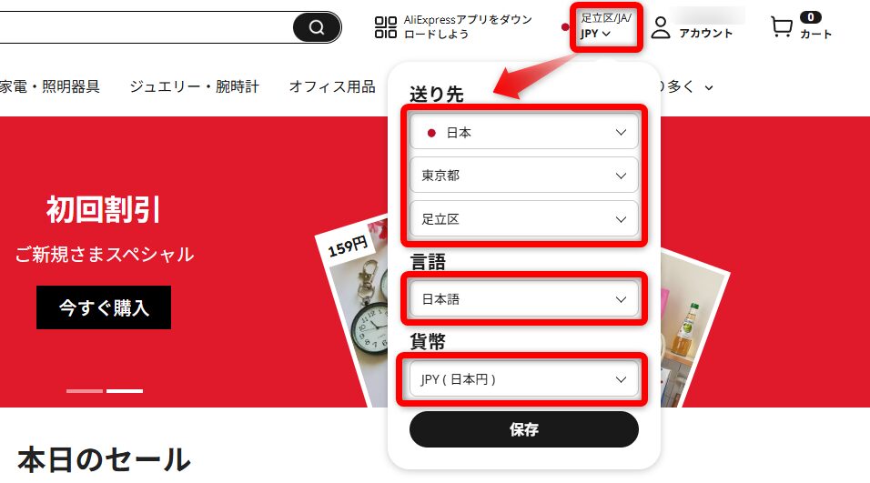 AliExpressアプリをダウンロードして開く