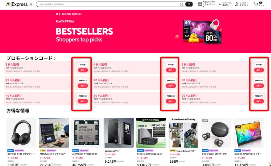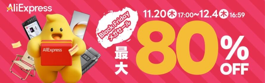 そこで本記事ではAliExpress ブラックフライデーセールの詳細とセール商品を紹介していきます。